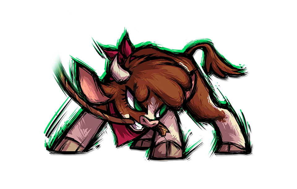 Arizona was the only one among cattlekind with courage enough to answer the Council’s call in search of Foenum’s Champion, knowing full well what dangers she faced. Thrust into the wider outside world, Arizona tries to make sense of it all (or decides not to care) while she charges headfirst into the fray.